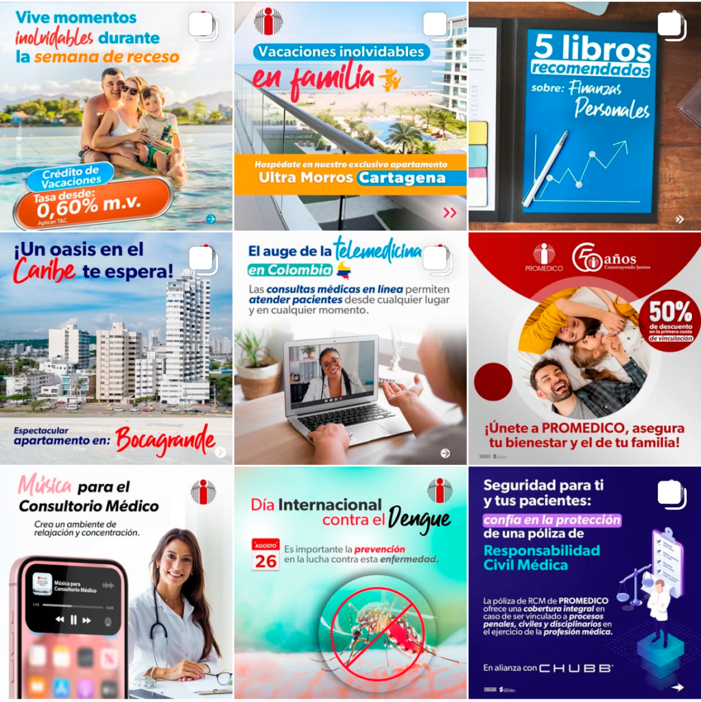 Realizamos la gestión del ecosistema de presencia digital de PROMEDICO en Instagram, Facebook, LinkedIn, Tiktok, X y Youtube. Creación de campañas y pauta digital. Seguimiento y elaboración mensual de KPI (métricas y analíticas).